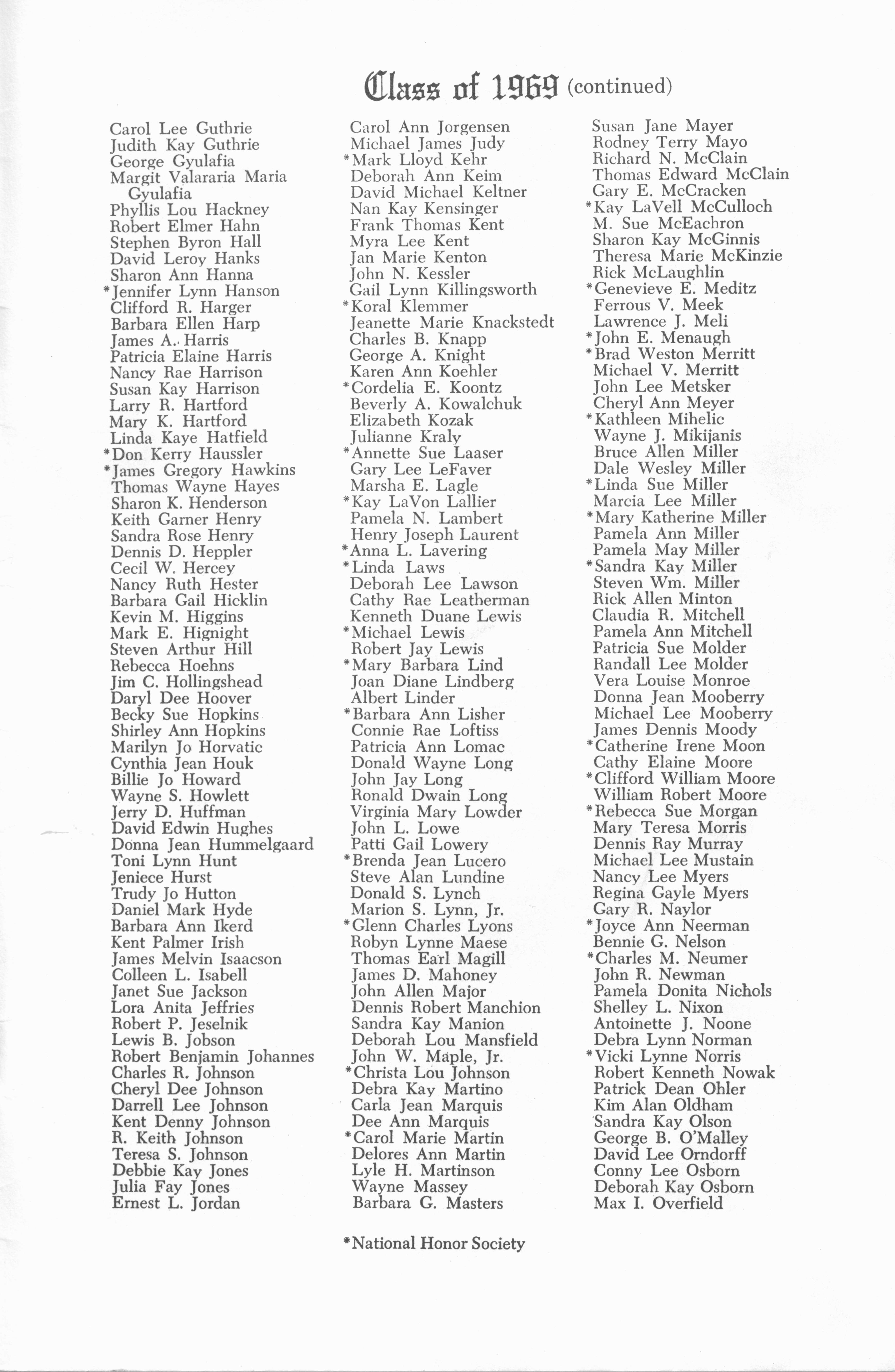 WHS Class of 1969 Commencement Booklet