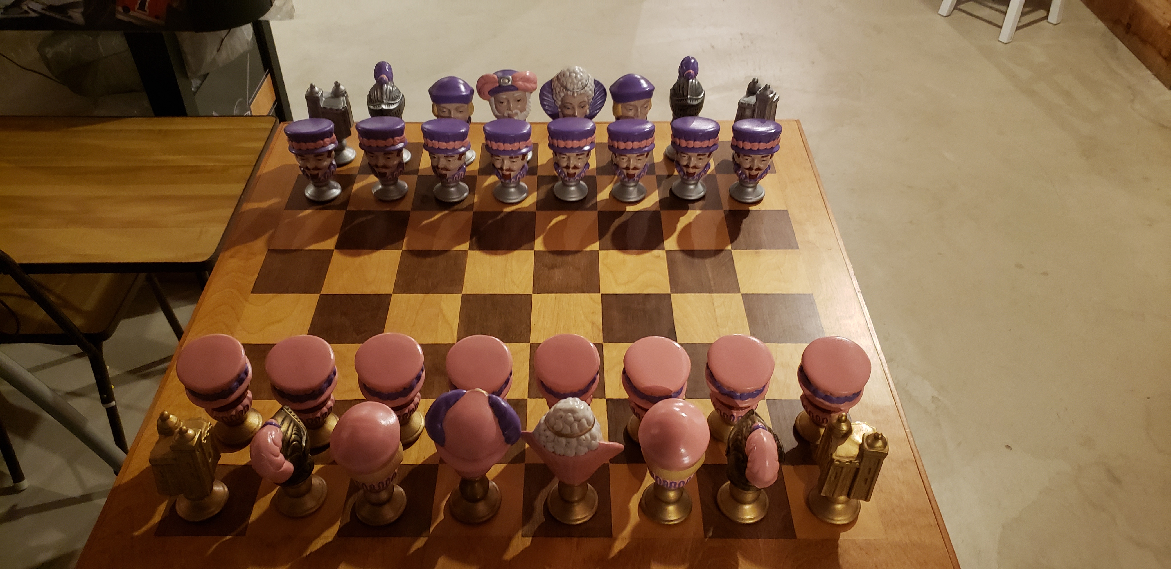 Ceramic chess set and wooden chess table