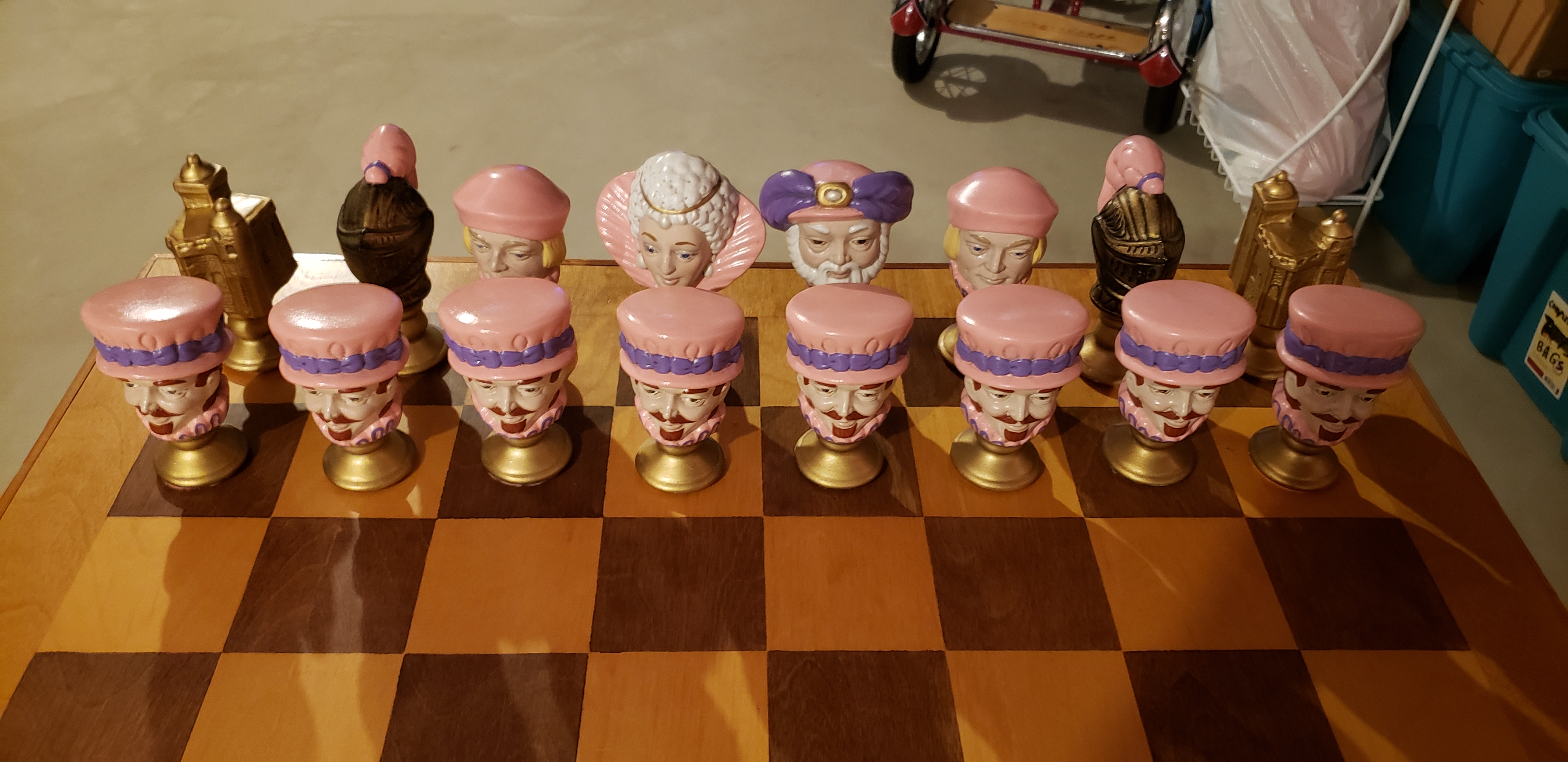 Ceramic chess set and wooden chess table