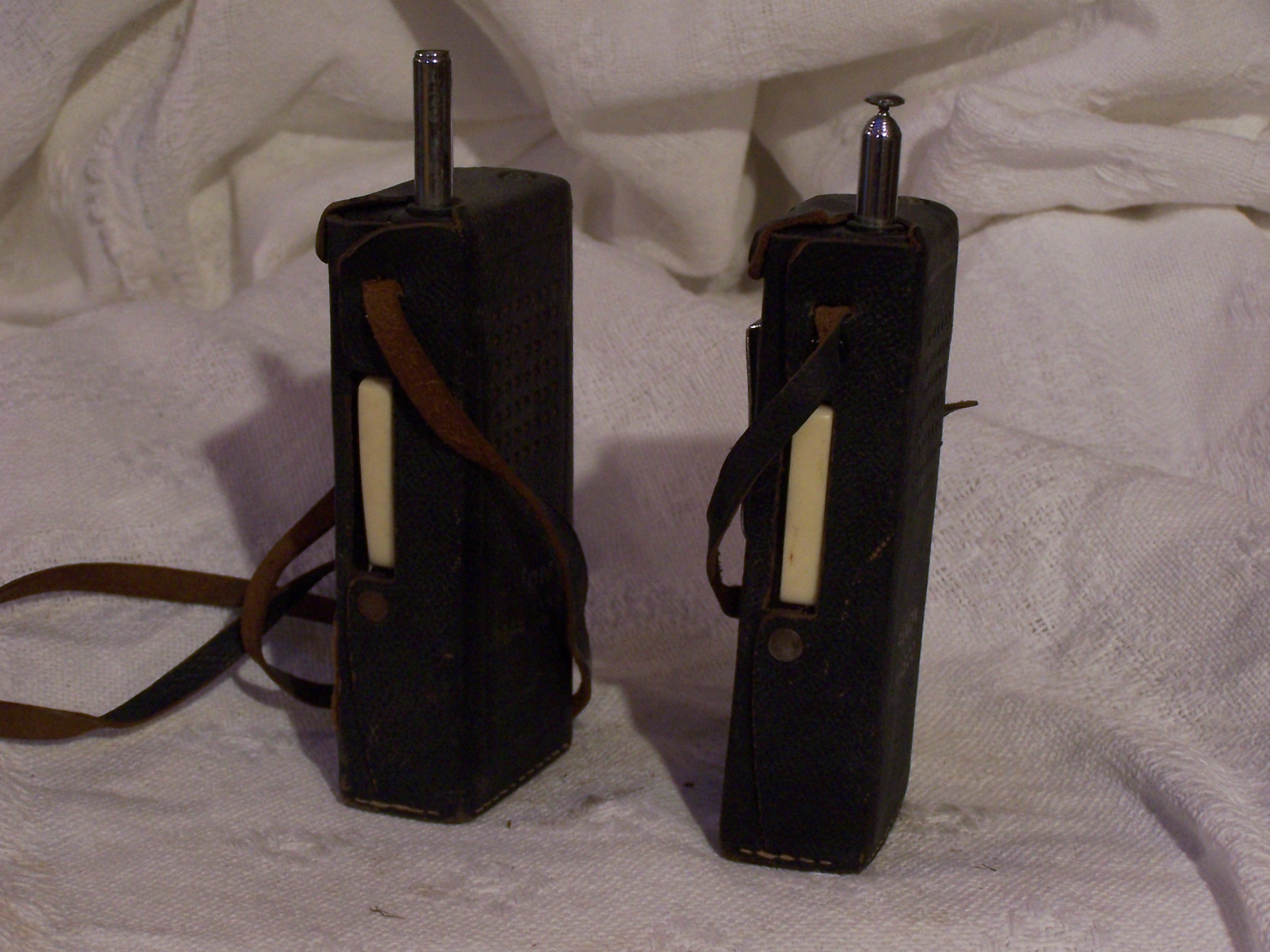 View of my old walkie talkies showing the push-to-talk buttons.